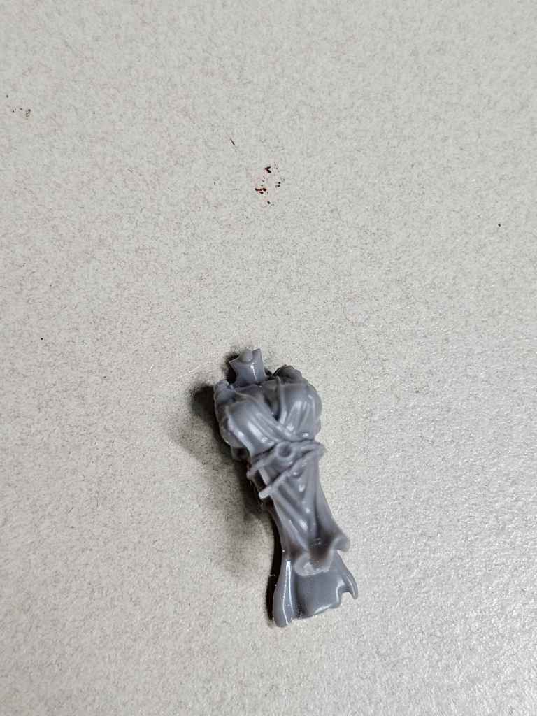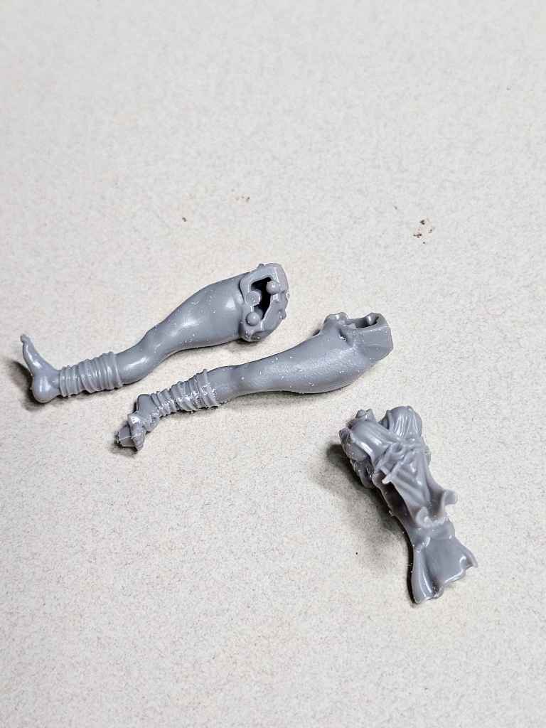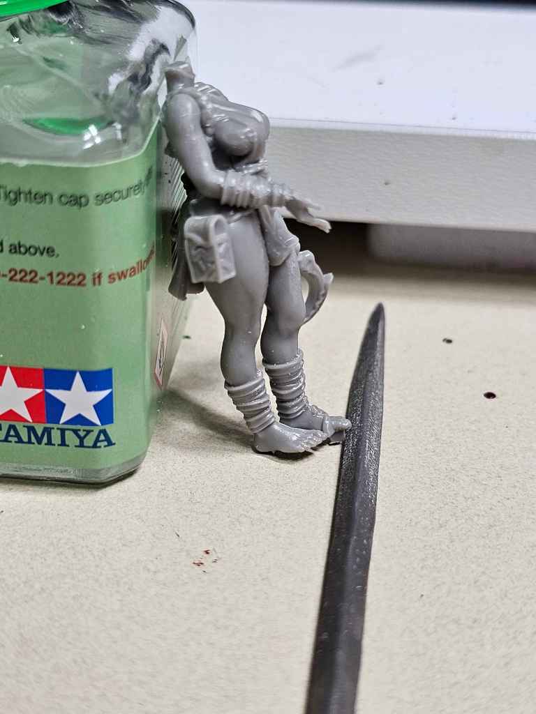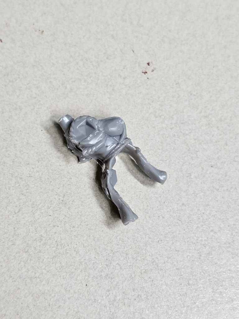 I slipped the legs into the torso, as I felt that approach gave less chance for a misaligned torso. It was also easier to slap on sprue glue to fill any gaps. I did realize after the fact that I hadn’t blown off the debris from filing mold lines, so forgive the dusty look!