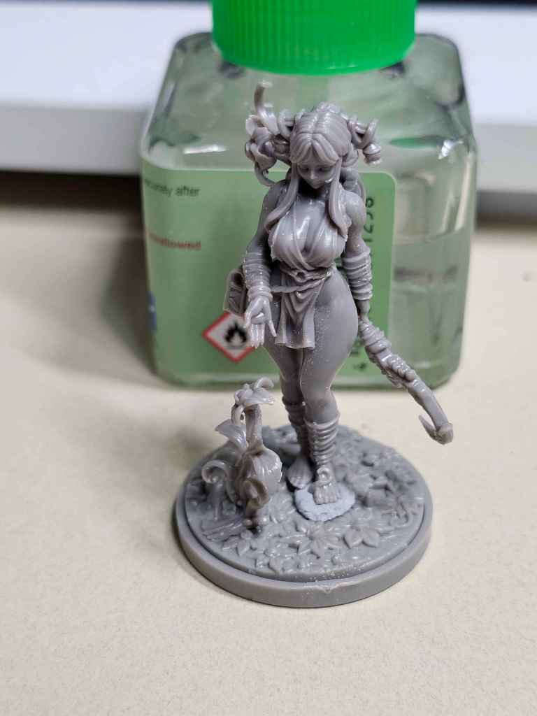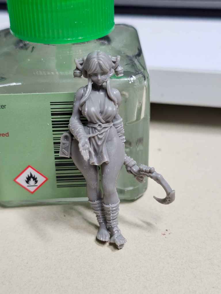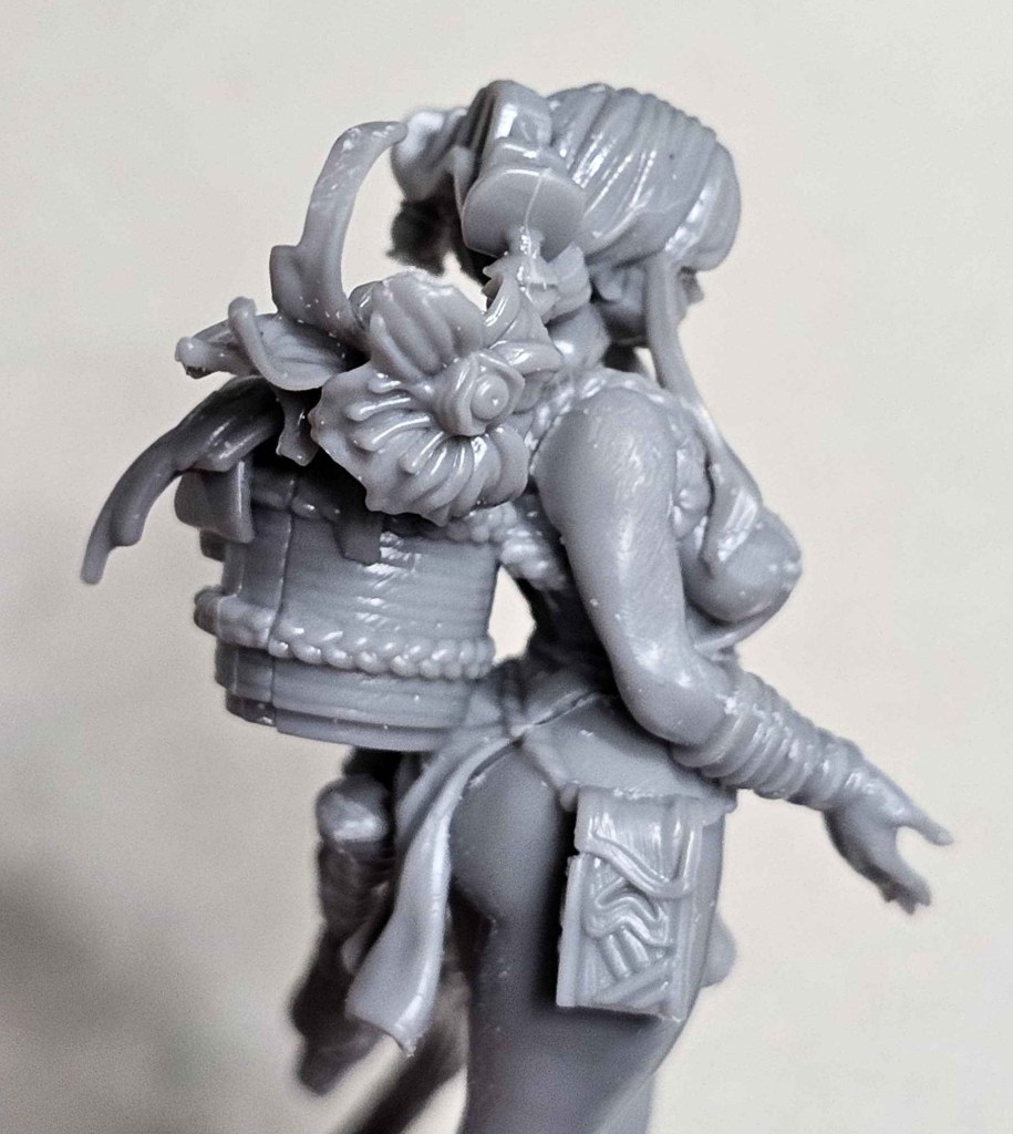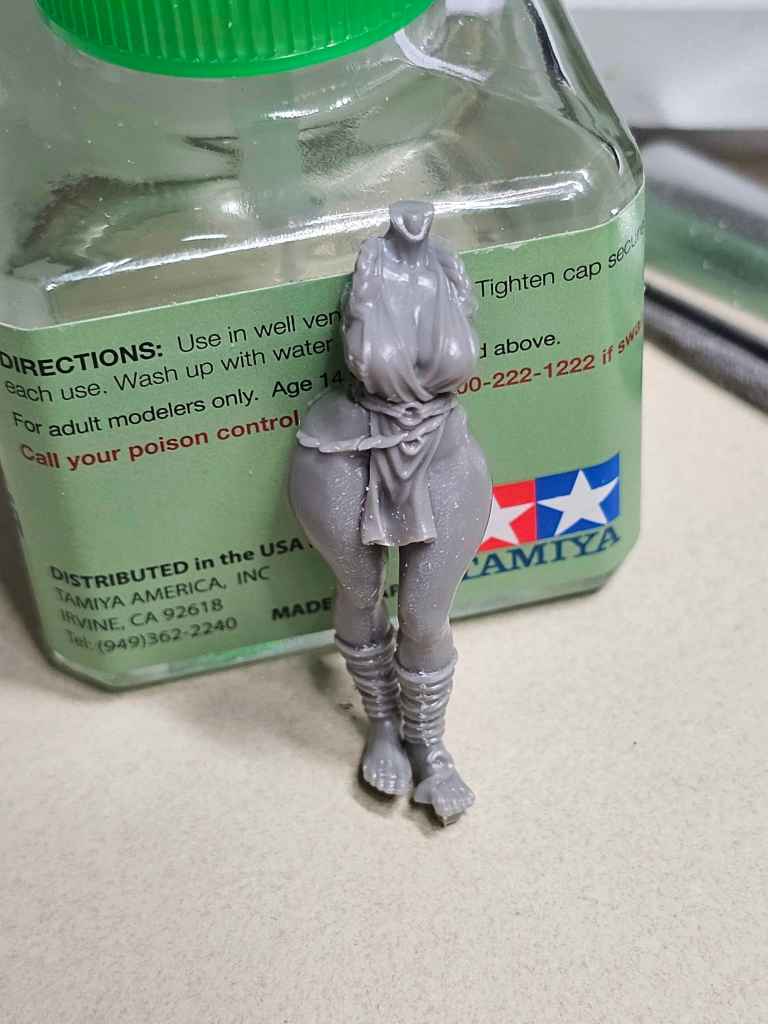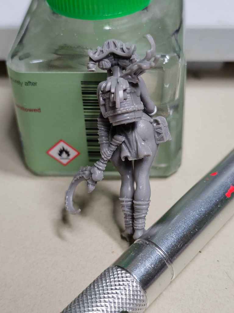 There is is, our pretty girl. I’ll have to go back through and get a bit of the remaining mold lines, but I typically give myself a break and come back to the model a little later with fresh eyes. Failing that, priming never fails to flag any I missed.