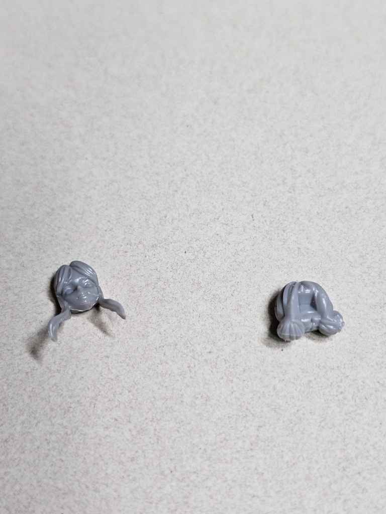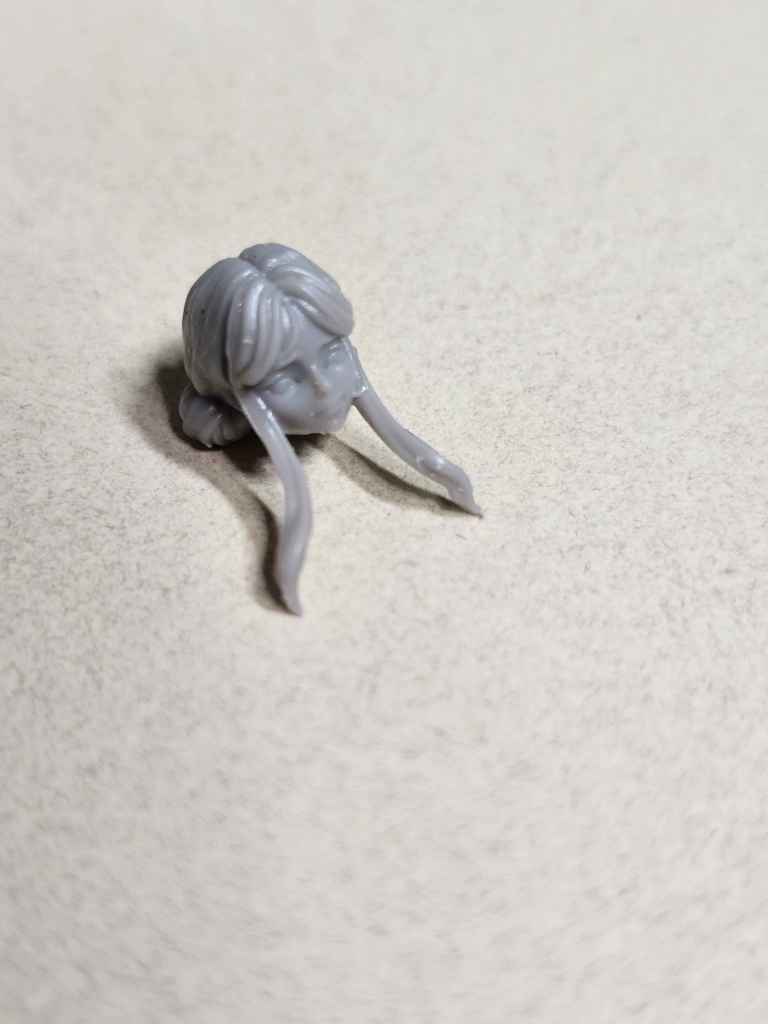 Before I get ahead of myself (ha!), it’s time to put the head and hair together. There are three pieces – face, hair, and hair ornament. Pretty simple!