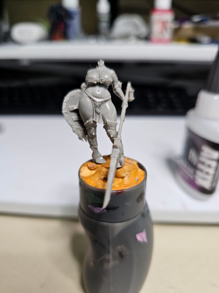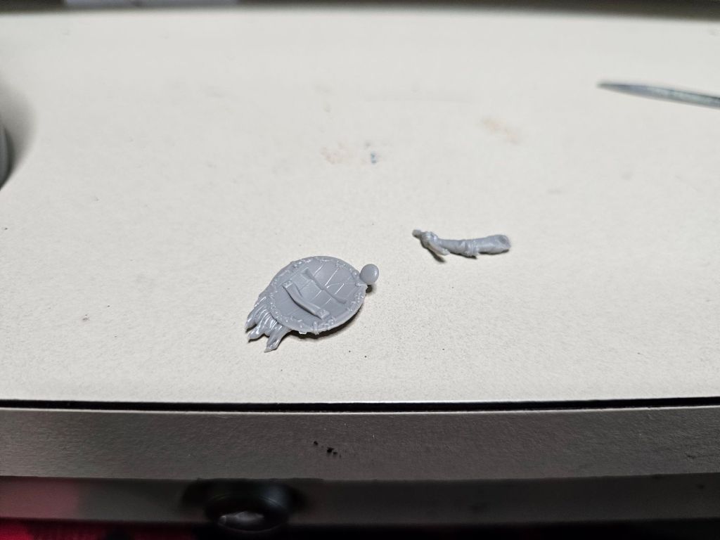 Next comes the arms. I first glued the shield onto the right arm, then let that set while I glued on the left arm.